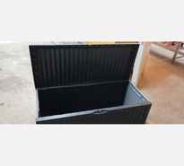COFFRE DE JARDIN EN PLASTIQUE NOIR.