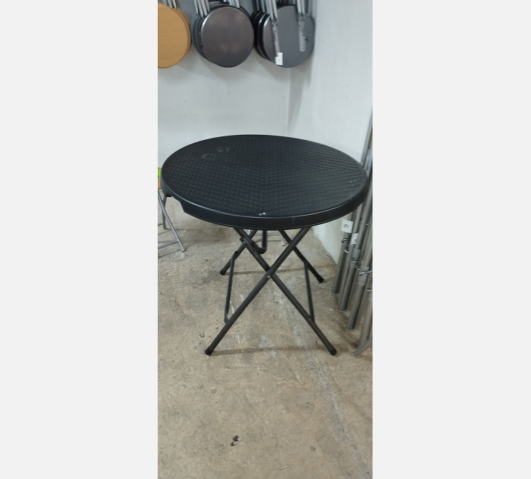 Table ronde pliante en métal noir.