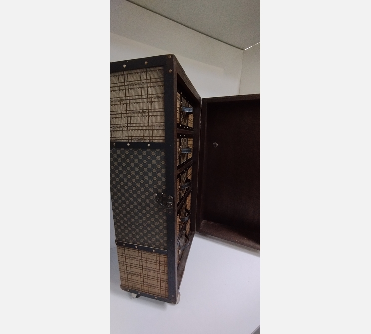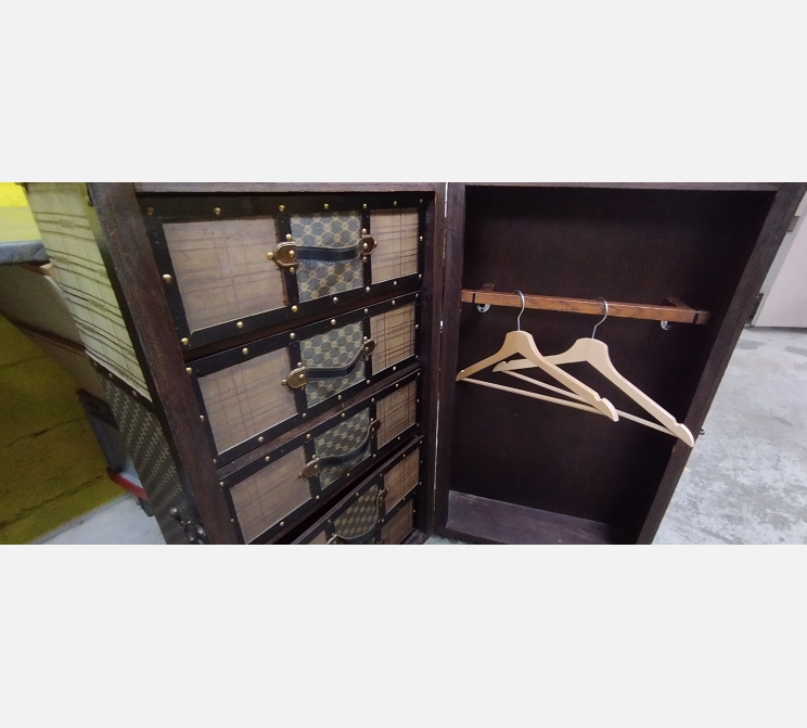Malle cabine de décoration 5 tiroirs sur roulettes.