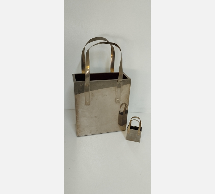 Original porte-revues chromé en forme de sac à main avec son porte crayons