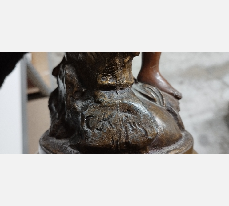Paire de sujets de la Grèce Antique en régule sur socle bois.