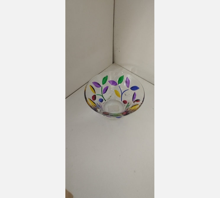 Petite coupelle en verre avec des fleurs de couleurs