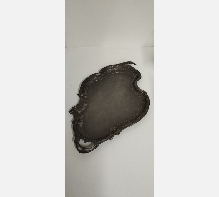 Plateau ancien en étain style Louis XV. 1 anse cassée
