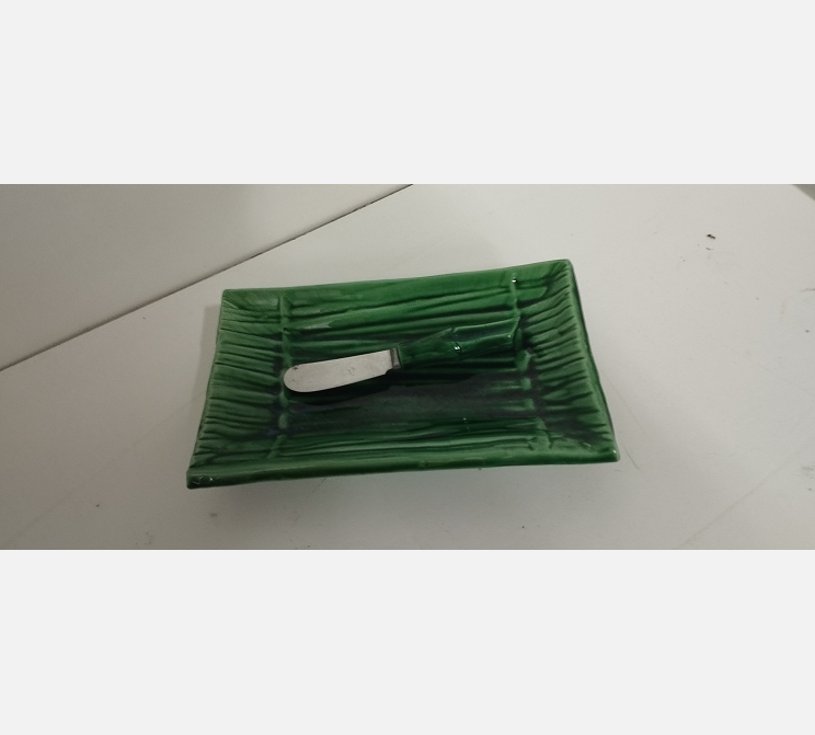 Beurrier avec couteau en ceramique verte.