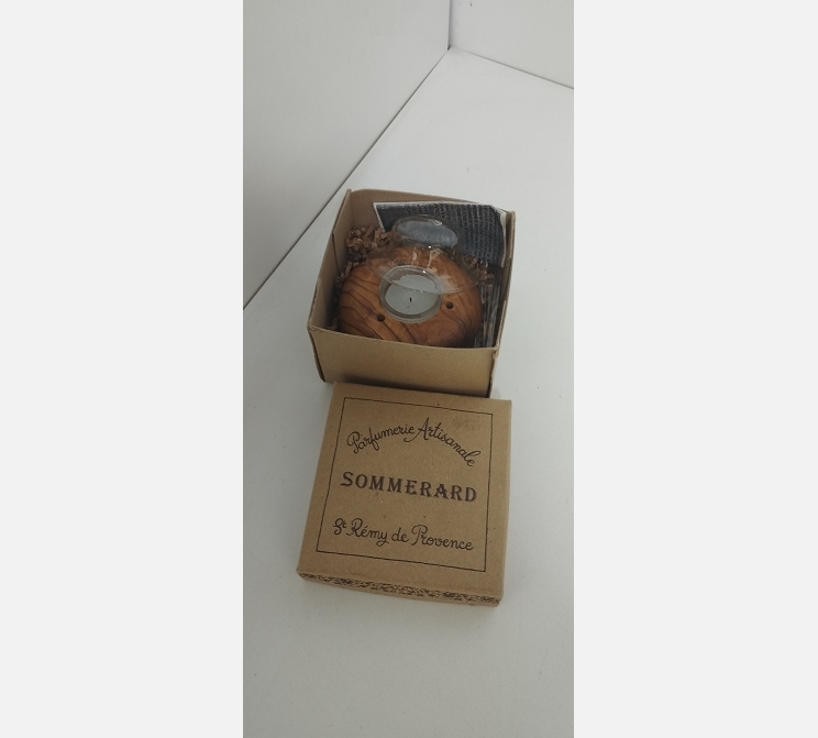 Bougie sur socle en bois