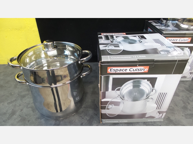 Couscoussier en inox de 12 litres avec couvercles en verre.