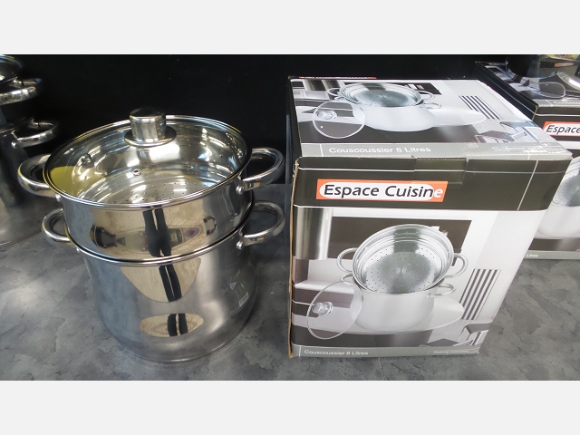 Couscoussier en inox de 8 litres avec couvercles en verre.