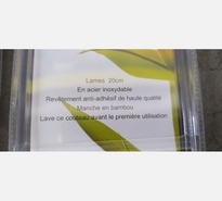 COUTEAU CHEF 20 CM. LAME ACIER INOX NOIR, MANCHE EN BAMBOU.