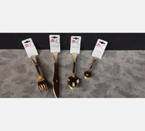 LOT DE 3 FOURCHETTES DORÉES EN INOX MARTELÉ.