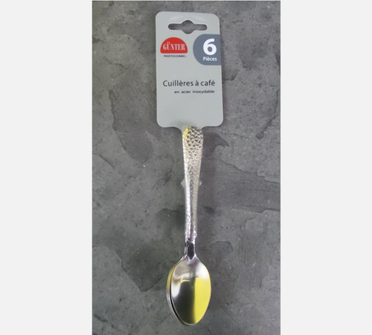 Lot de 6 petites cuillères à café en inox martelé.
