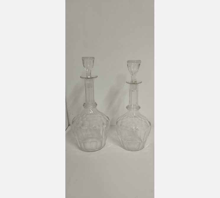 Paire de carafes en cristal avec bouchons. 1 grande, 1 petite