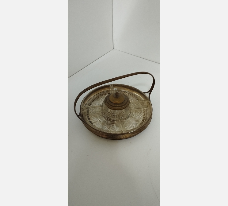 Serviteur apéritif métal argenté 5 compartiments en verre.