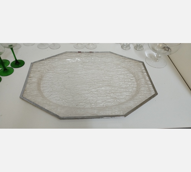 Superbe plateau vintage en lucite et chrome style Willy Rizzo