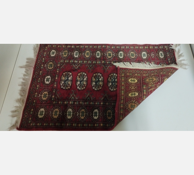 (13) Tapis oriental teinte rouge et bordeaux. 95/63 cm