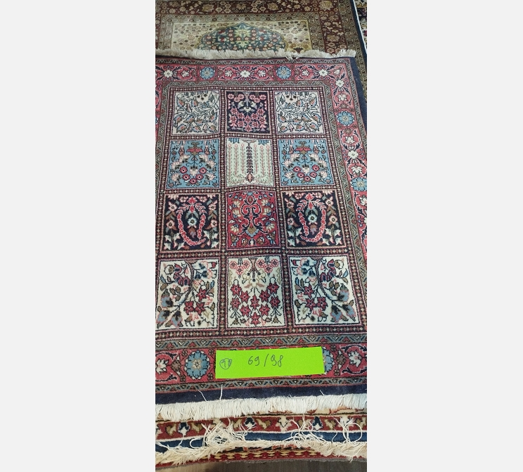 (10) Tapis oriental teintes rouge et bleu. 69/98 cm.