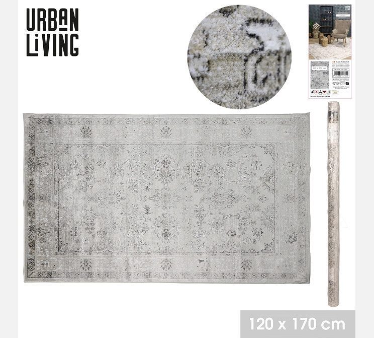 'LE PERSEPOLIS' TAPIS 100% VISCOSE DECOR SELMAN COULEUR ARGENT 120X170CM
