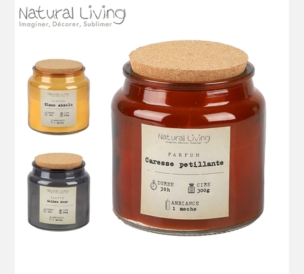 'MARCEL' BOUGIE PARFUMEE AVEC POT EN VERRE ET COUVERCLE EN LIEGE 3 COULEURS