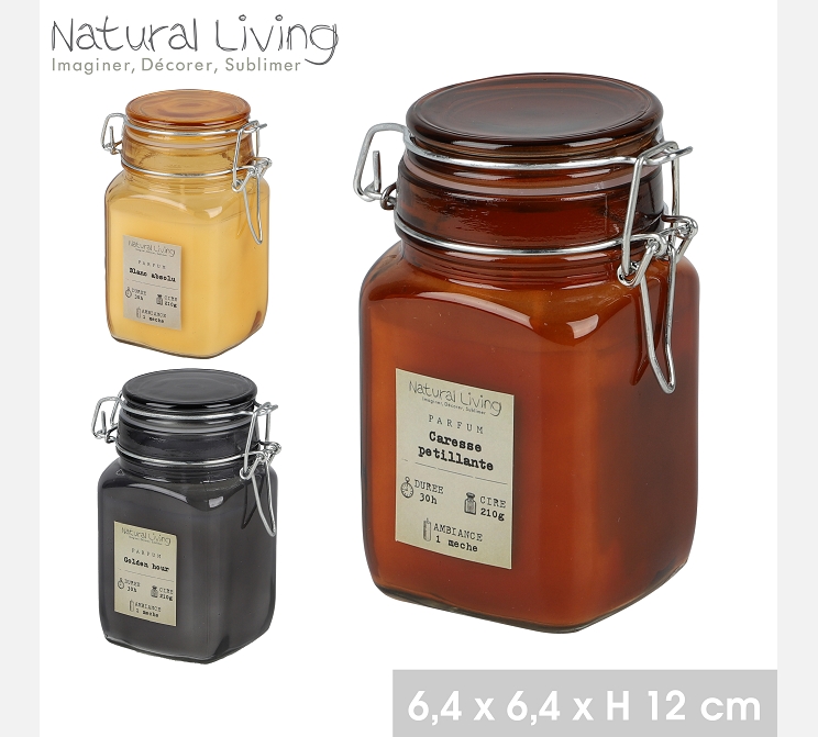 'SIMON' BOUGIE PARFUMEE AVEC POT EN VERRE 3 COULEURS ASSORTIES 6,4X6,4XH12CM