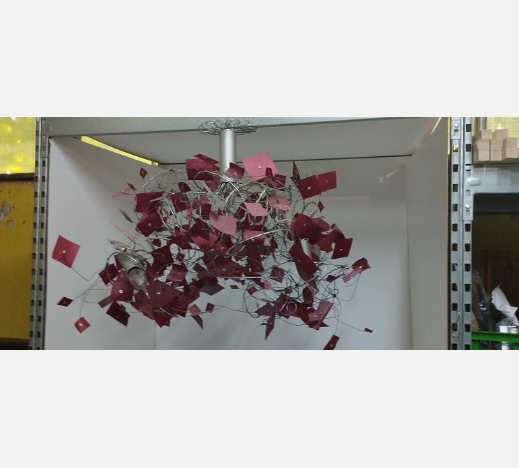 Lustre de créateur en métal et papillotes rouge. Fabriqué en France.