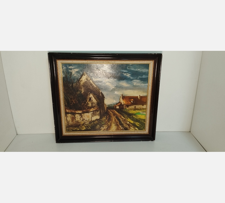 Chaumière au bord du chemin Vlaminck. Tableau troué