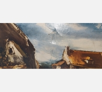 CHAUMIÈRE AU BORD DU CHEMIN VLAMINCK. TABLEAU TROUÉ