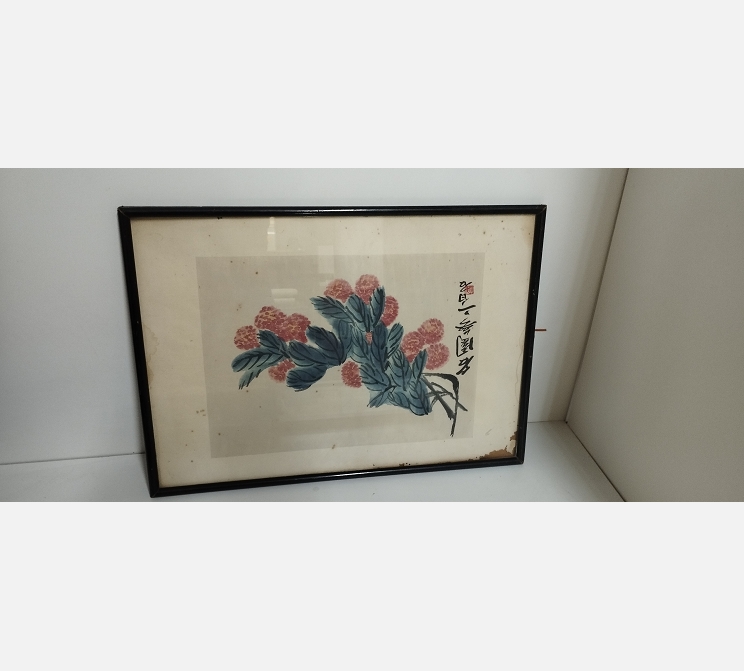 Estampe japonaise ancienne dans cadre noir
