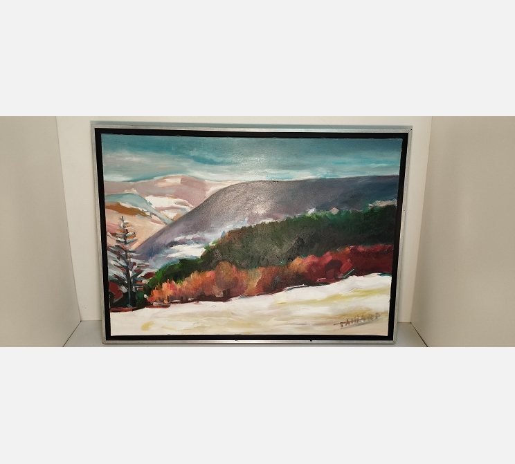 Grande peinture de paysage vallonné de JF Taillard en 2012 - Tableau / Art - Décoration - Destock Occaz