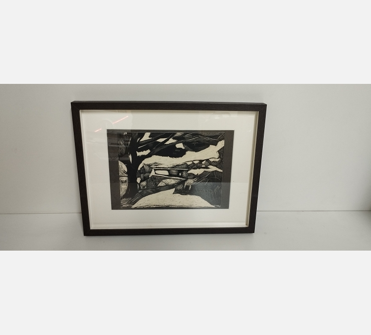 Gravure moderne de sous bois en noir et blanc