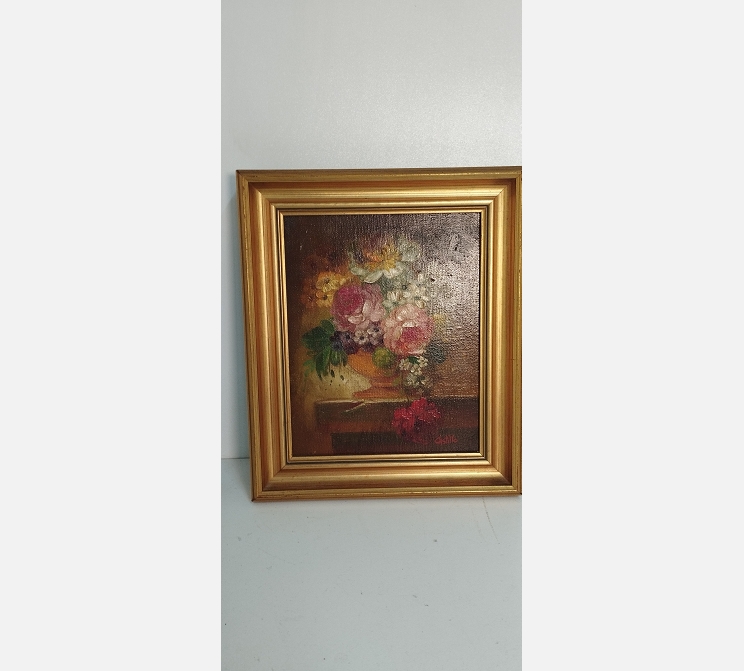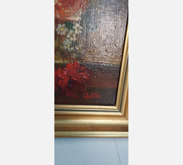 Jolie nature morte de bouquet signée Castillo dans cadre doré.