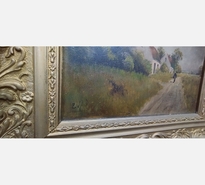 PEINTURE À L'HUILE SUR TOILE ANTIQUE RUSTIQUE DANS UN CADRE EN BOIS.
