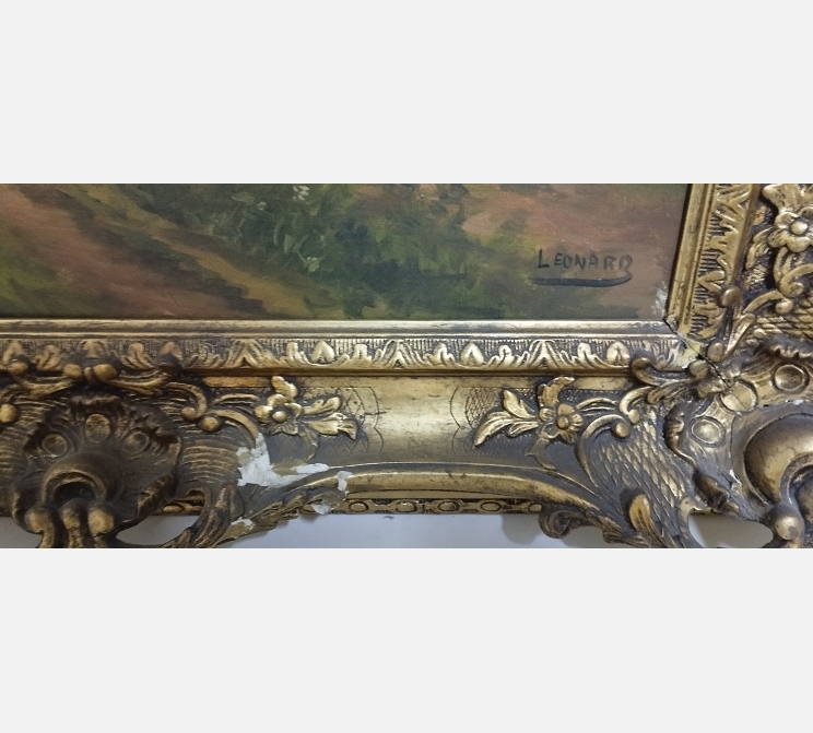 Peinture Chemin à la campagne signée Léonard dans un très beau cadre doré