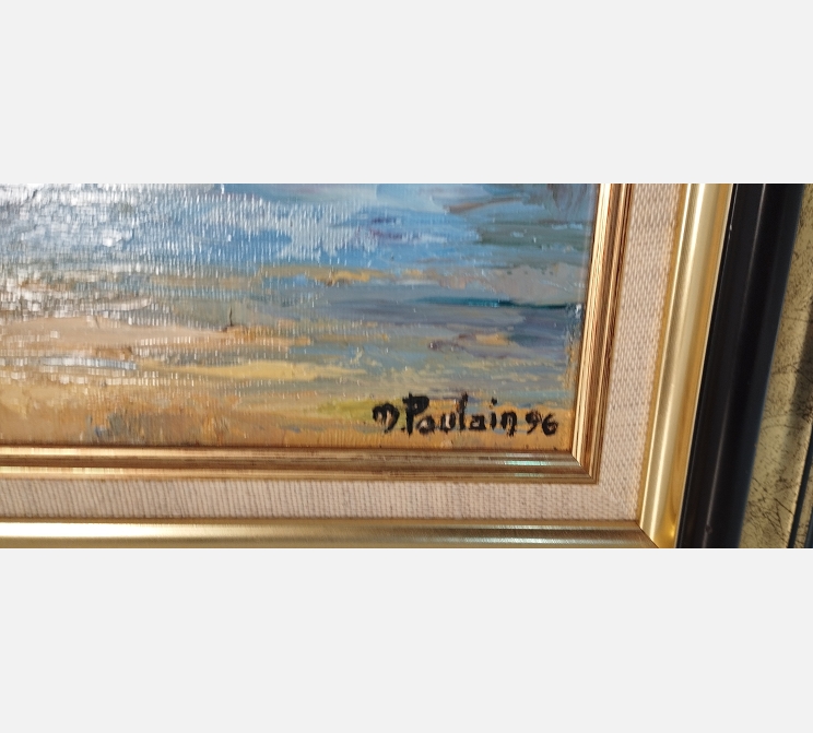 Peinture dans joli cadre de bords de Loire signée Poulain.