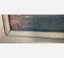 PEINTURE DE BARQUE SUR UN BORD DE RIVIÈRE SIGNÉE MEUNIER EN 1927