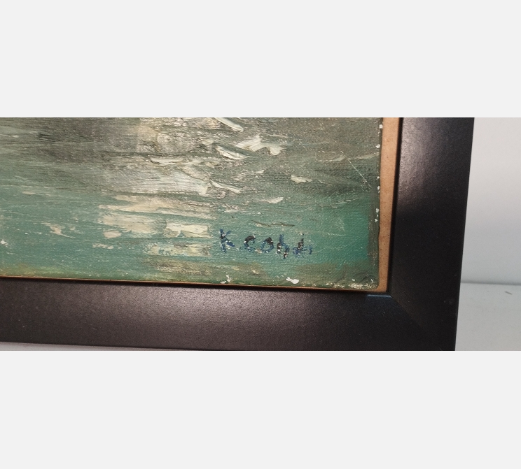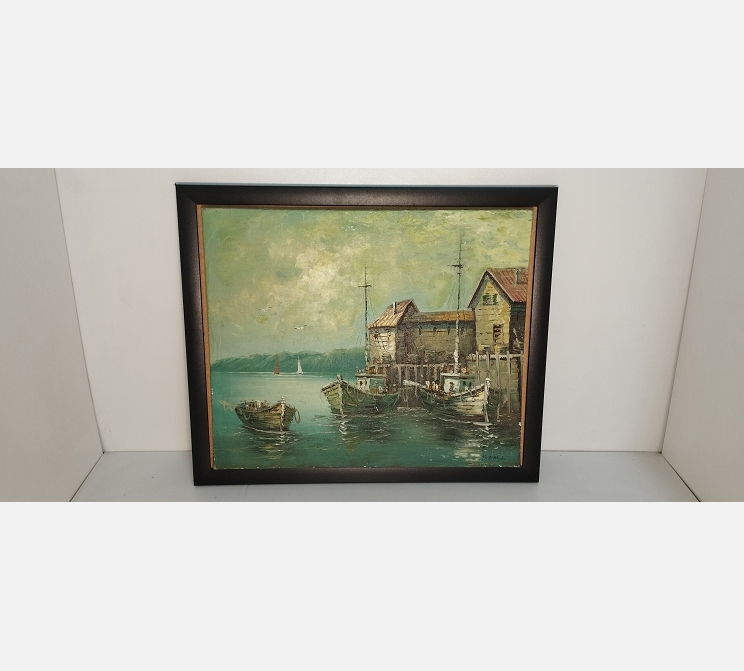 Peinture de bateaux de pêches à quai, signée.