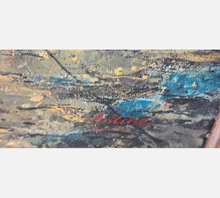 Peinture d'un bateau de pêche à marée basse, signée Anline