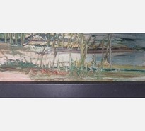 PEINTURE D'UN VILLAGE AU BORD DE L'EAU