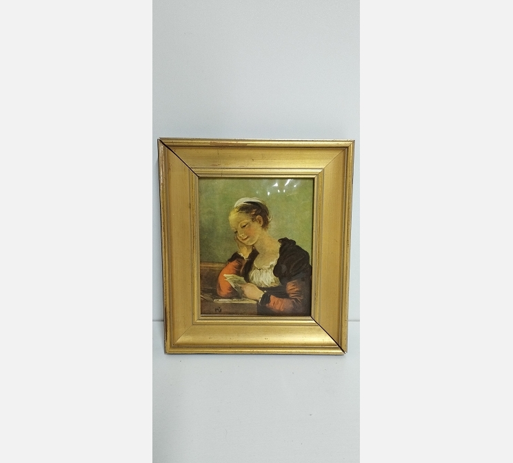 Peinture émaillé 'La lettre' reproduction de Jean Fragonard