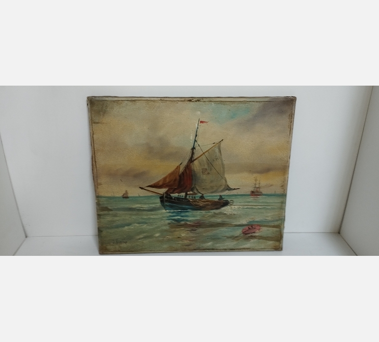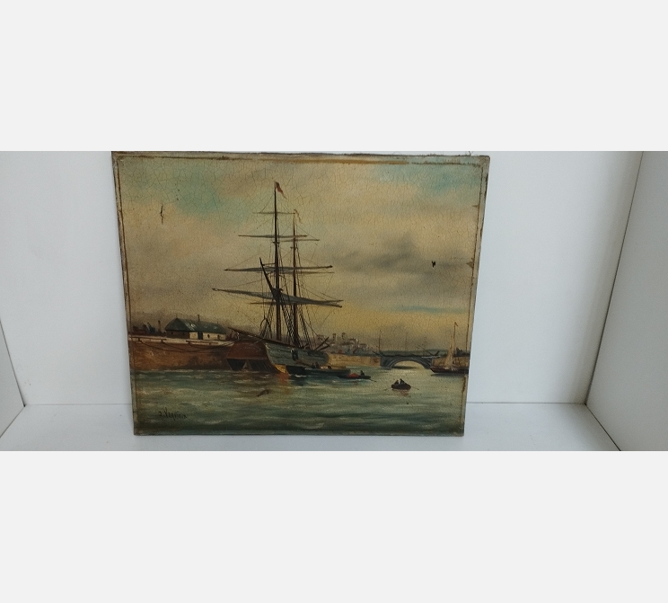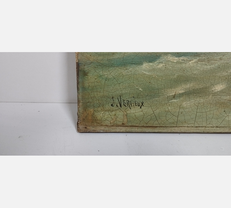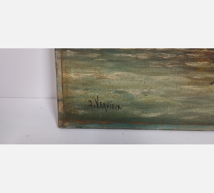Peinture marine ancienne à restaurer signée J. Vervieux