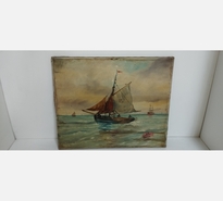 PEINTURE MARINE ANCIENNE À RESTAURER SIGNÉE J. VERVIEUX