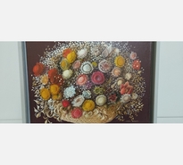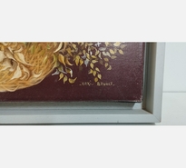 PEINTURE NATURE MORTE BOUQUET DE FLEURS SIGNÉE KAKI BRUNET