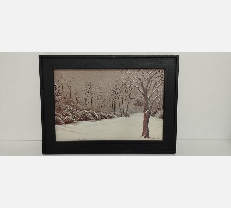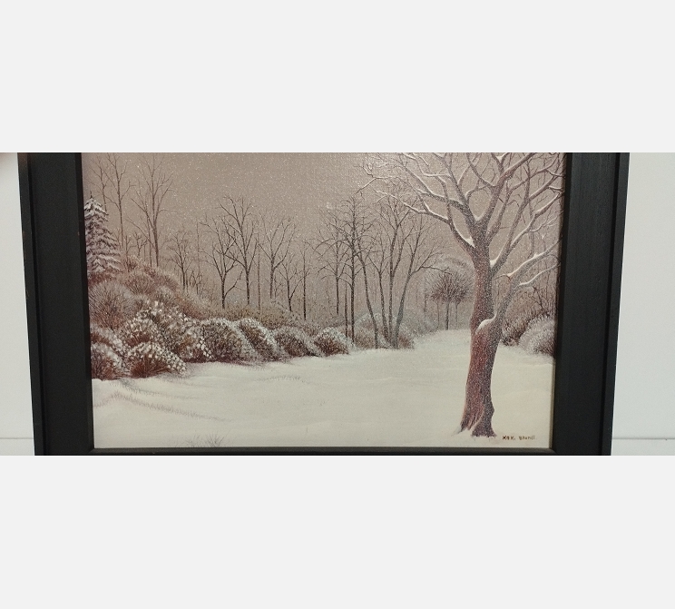 Peinture Paysage sous la neige signée Kaki Brunet