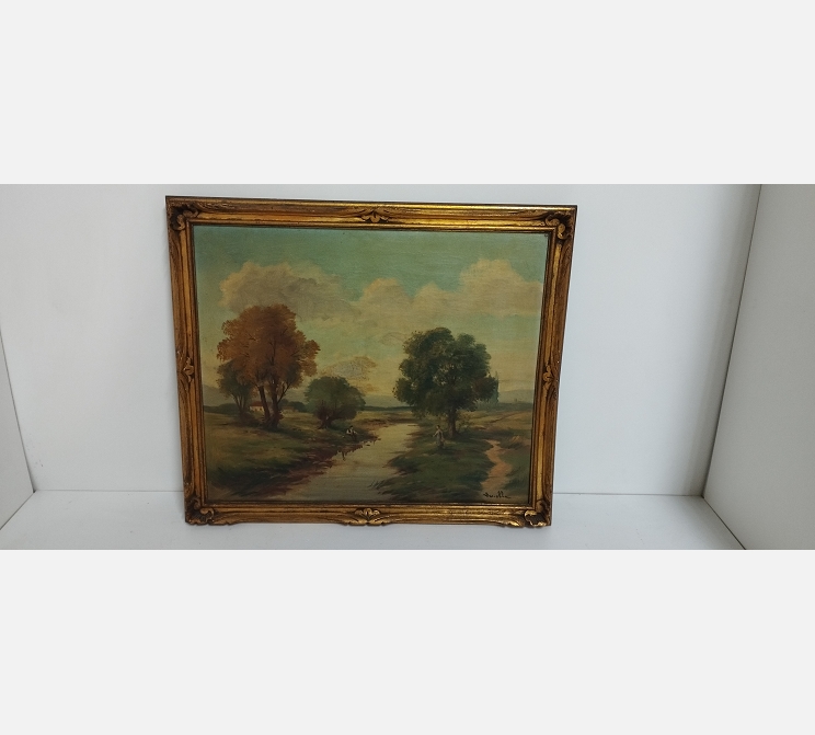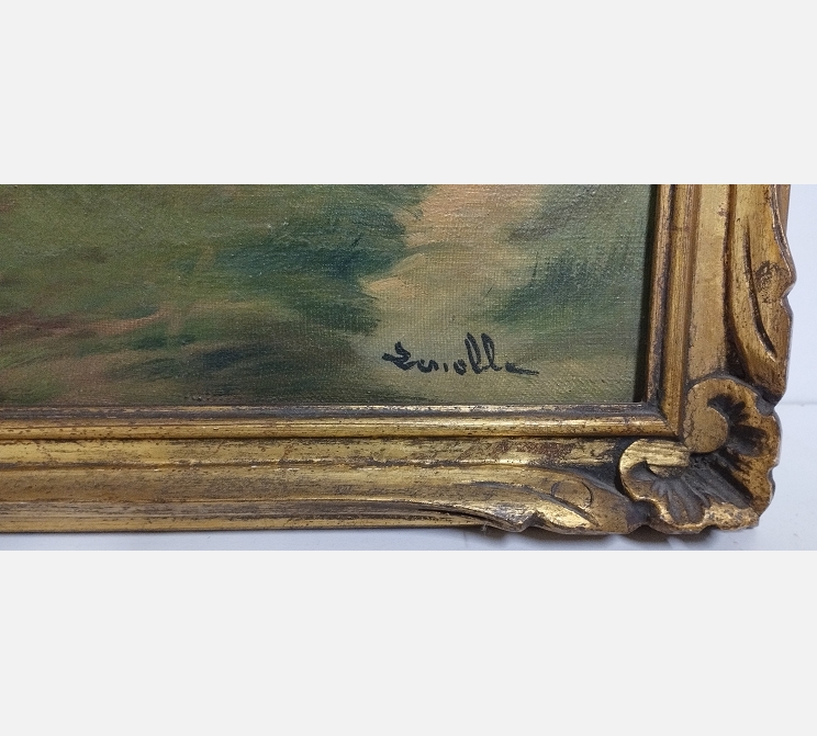 Peinture Pêcheur au bord de l'eau signée Zeriolle