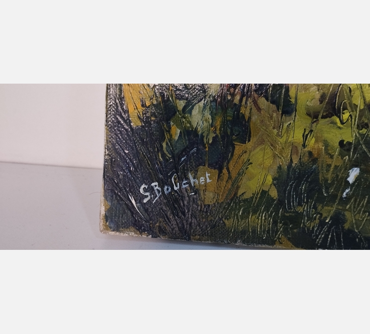 Peinture sans cadre d'un chemin dans la garrigue signée S. Bolchet