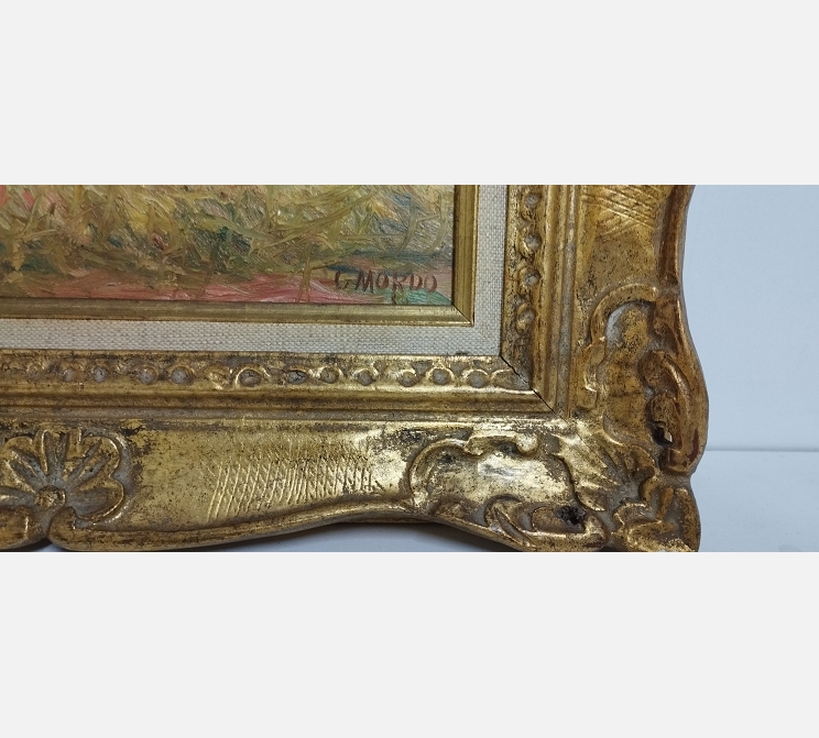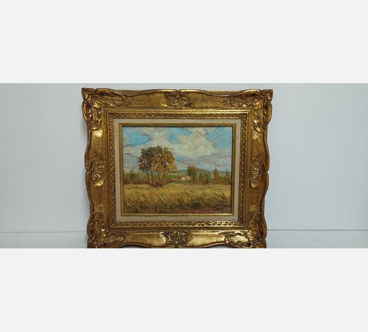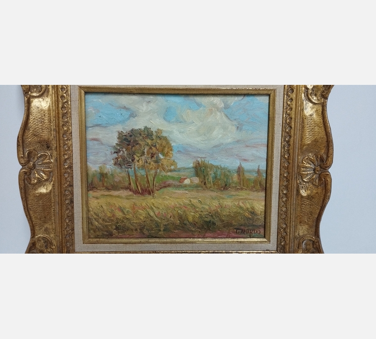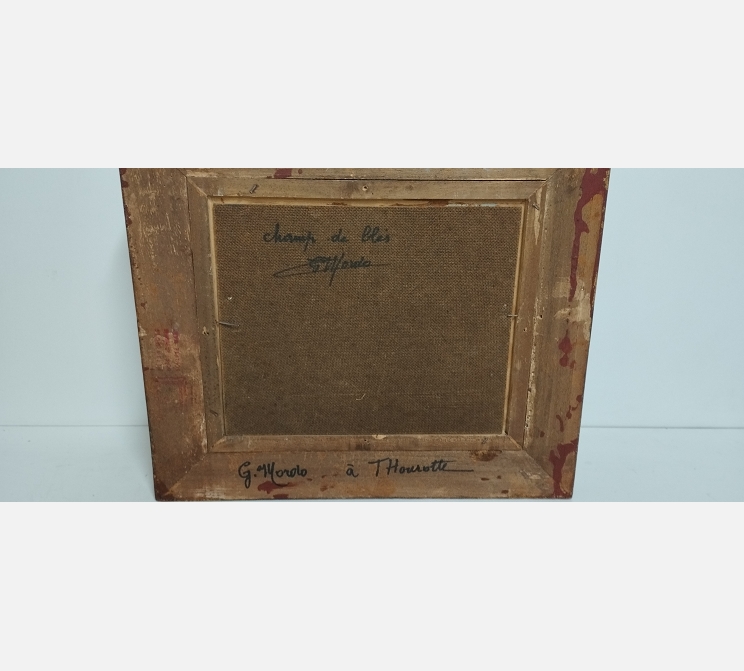Peinture sur bois 'Champs de blé à Thourotte' signée G. Mordo