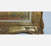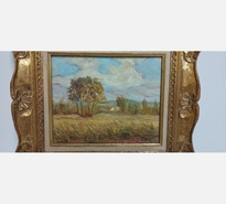 PEINTURE SUR BOIS 'CHAMPS DE BLÉ À THOUROTTE' SIGNÉE G. MORDO