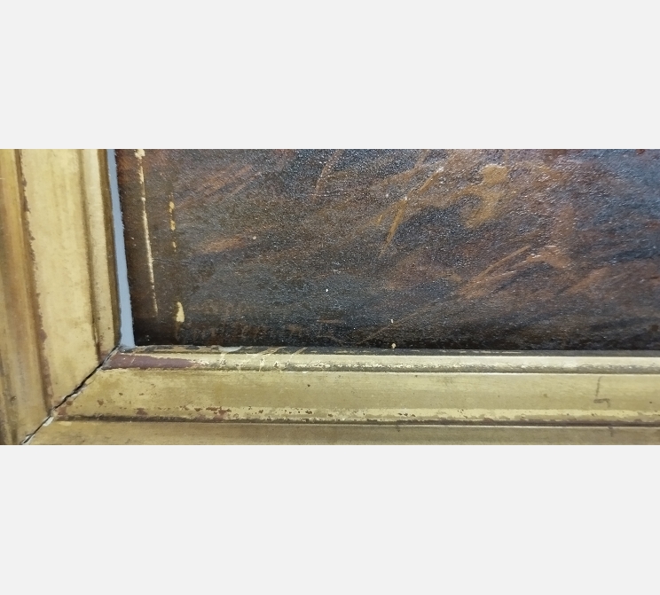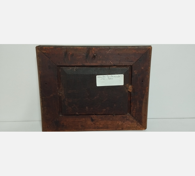 Peinture sur bois 'Coq et poules' signée Claude Guilleminet