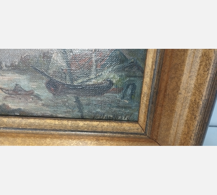 Peinture sur bois d'un vieux chalut au bord de l'eau
