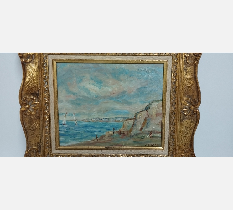 Peinture sur bois 'Mer du Nord Les falaises' signée G. Mordo