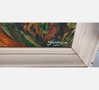 PEINTURE SUR BOIS, PERSONNAGE SUR UN CHEMIN DEVANT 2 MAISONS, SIGNÉE YVONNE