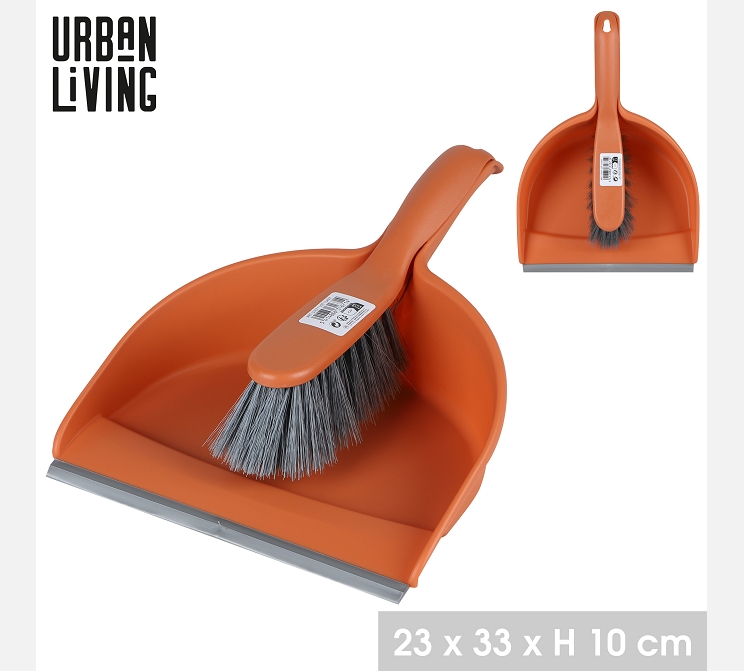 Ensemble pelle et balayette orange.